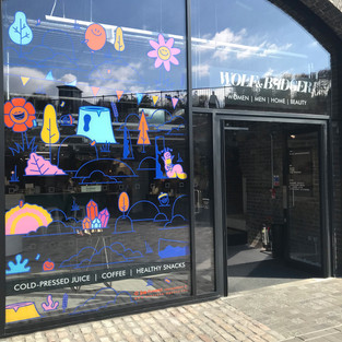 Additional to this, I have transformed the windows of the Wolf & Badger store, covering them with an 'impressive colourful mix of anthropomorphic illustrations.'